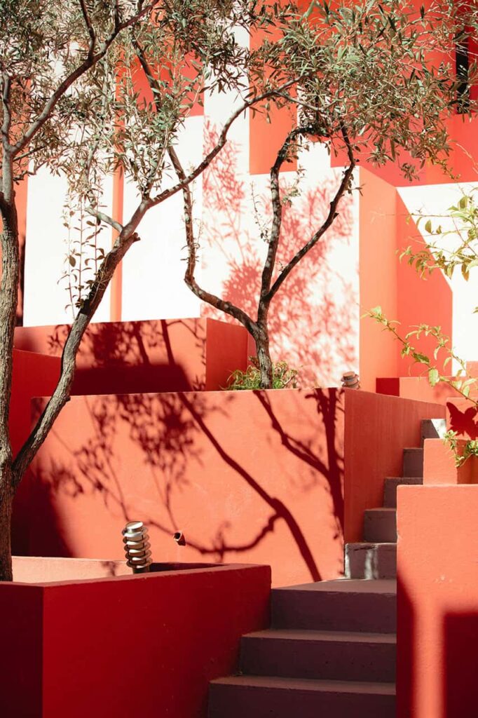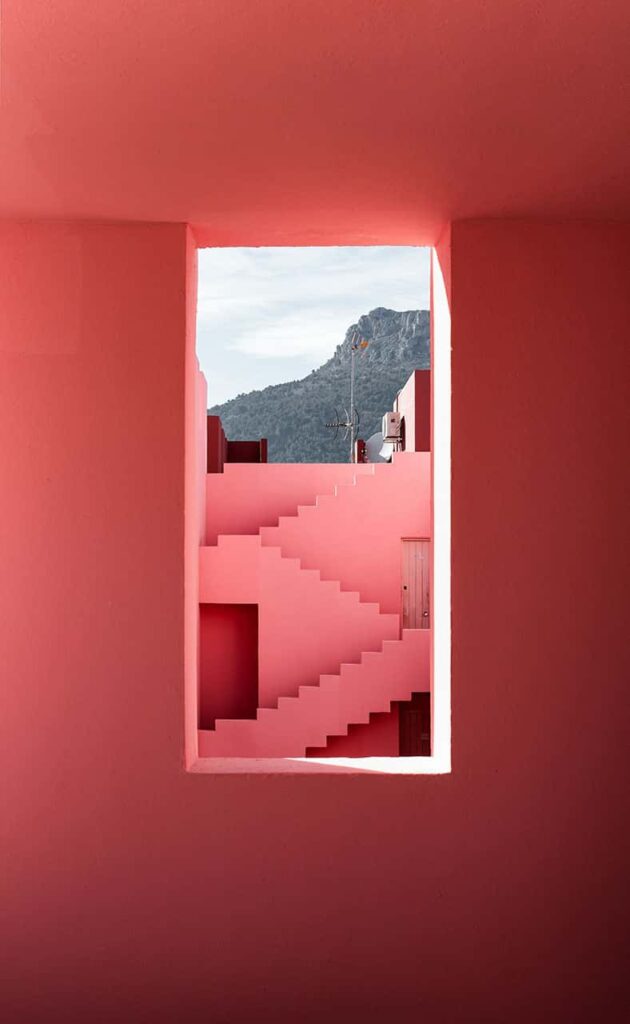 La Muralla Roja is more than a building; it’s a celebration of color and form. The bold reds and azure blues not only pay homage to the vibrant palette of Calpe but also symbolize a harmonious fusion of architectural brilliance with the natural surroundings. The project is a visual symphony, where each line, curve, and hue contributes to a holistic experience that captures the spirit of this Spanish coastal town.